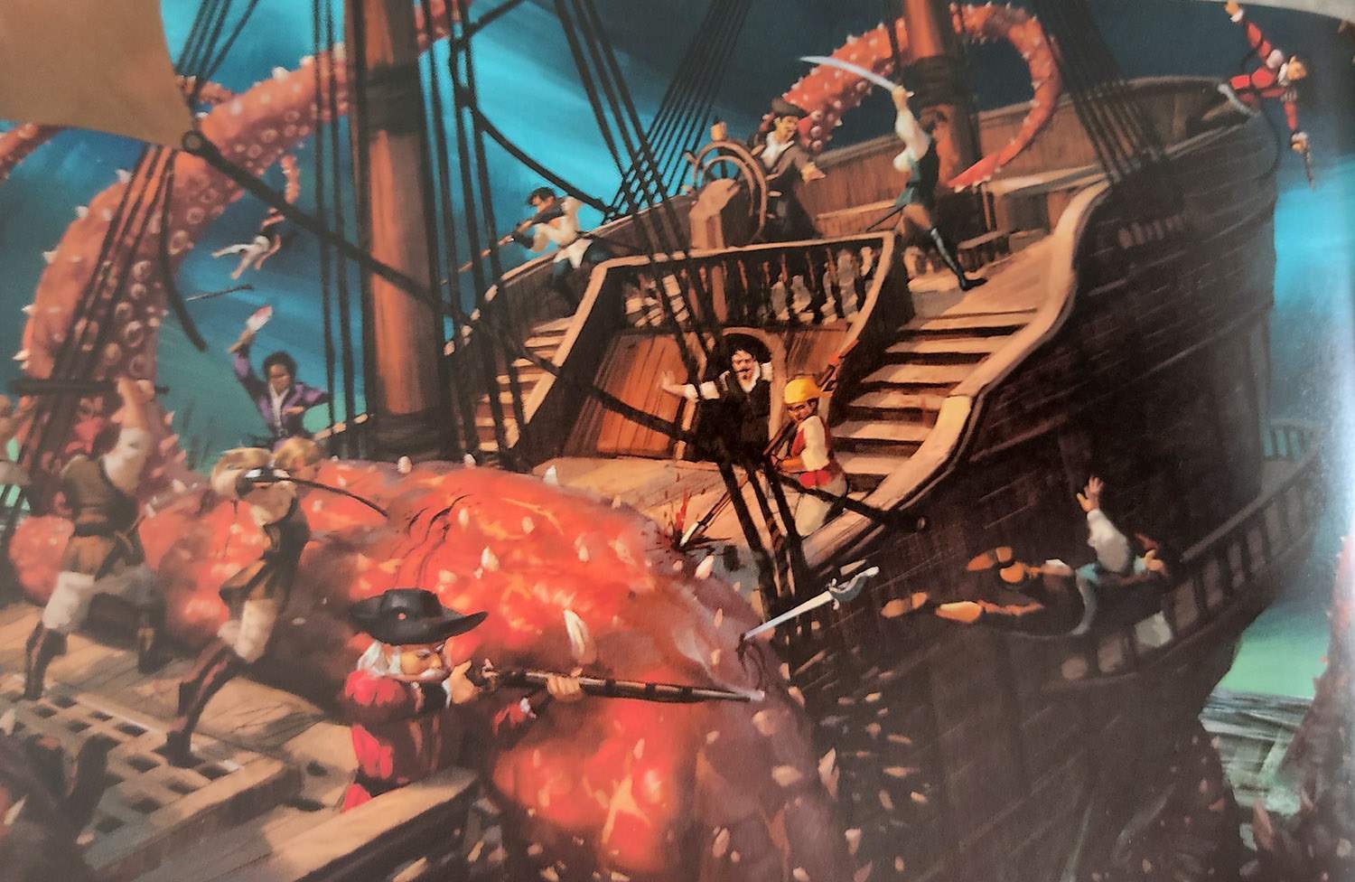 Depuis le monde de Glorantha créé par Greg Stafford dans les années 70, je n’avais plus vu un univers exclusivement dédié au jeu de rôle qui soit si riche que celui de 7e mer. Ce livre de base donne le ton et quand l’on sait, comme vous pouvez le voir ci-dessous, que la gamme s’étend sur un grand nombre de livres, l’on prend conscience de la largeur de l’éventail de possibilités. Il y a des dizaines de façons d’appréhender 7e mer, on peut même y jouer sans jamais mettre le pied sur un bateau tant le découpage politique de Théah est riche. Ce jeu se prêtre d’ailleurs facilement aux scénarios construits sur l’intrigue et la conspiration, voire l’amour galant. Pour ce qui est des règles, je pense que 7e mer n’est pas un jeu destiné aux MJs débutants. Si le système est fondamentalement simple, le MJ doit prendre en compte nombre de facteurs et surtout privilégier un aspect narratif. Une tache qui n’est pas simple. Par contre, une fois maitrisé, nul doute que le système parvient à reconstituer les ambiances épiques propres aux romans et films d’aventure et l’héroïsme est assurément au rendez-vous.