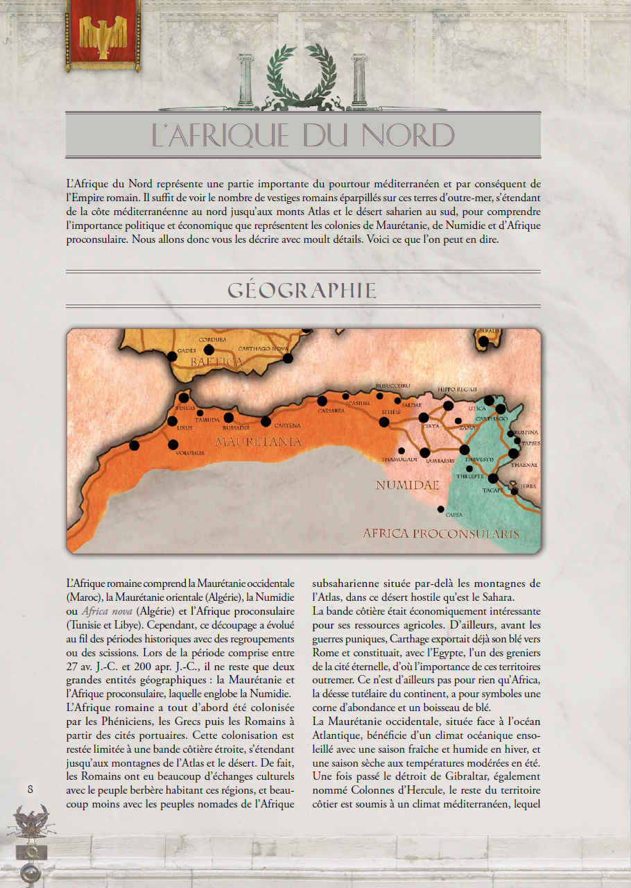Ce supplément pour le jeu de rôle IMPERATOR présente l’Afrique romaine en détails.