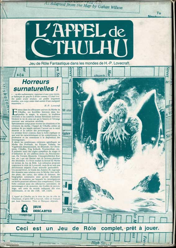 L’Appel de Cthulhu est le titre de jeu de rôle de Chaosium, d’après H.P. Lovecraft, édité en français par Jeux Descartes.