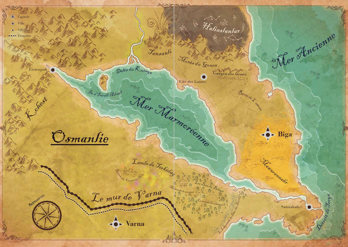 L’ouvrage vous emmènera à Aqabah, cité de la sagesse ; mais aussi visiter le Grand Vide, un désert mortel, ainsi que la mystérieuse cité d’Irem, scellée par trois portes-énigmes, à Kniga, la ville machine que se disputent alchimistes et créateurs d’automates ; peut-être oserez-vous traverser le Mur de Varna et découvrir l’Osmanlie ? Où les Dieux marchent parmi les hommes… Et où les hommes peuvent espérer devenir des Dieux.