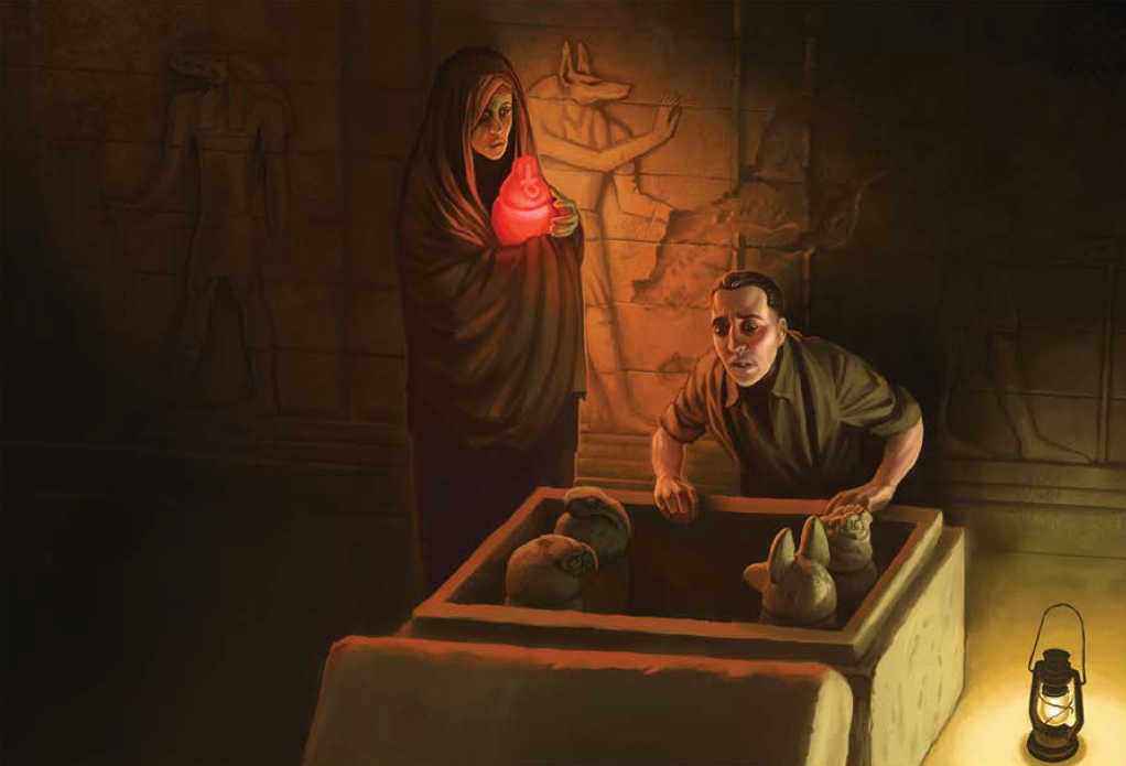 - La Nécropole : Quelles horreurs antiques renferme la tombe récemment découverte au cœur de la Vallée des Rois, en Égypte ? Debout au sommet des marches qui s’enfoncent dans les ténèbres, le moment est mal choisi pour vous laisser troubler par les superstitions locales et les malheureux incidents survenus à l’ouverture du tombeau de Toutankhamon…