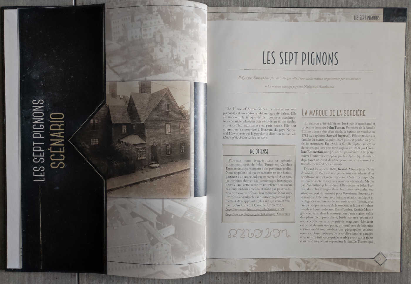 Ce scénario est centré autour d’un édifice emblématique de Salem, the House of the Seven Gables (la maison aux sept pignons), popularisé par l’écrivain du pays, Nathaniel Hawthorne. Les investigateurs sont confrontés aux comportemenst étranges d’enfants suite à une visite scolaire de la ville. Dans l’ombre de l’affaire se cache un bien sinistre personnnage, directement importé des nouvelles de H.P. Lovecraft, la sorcière Keziah Mason.