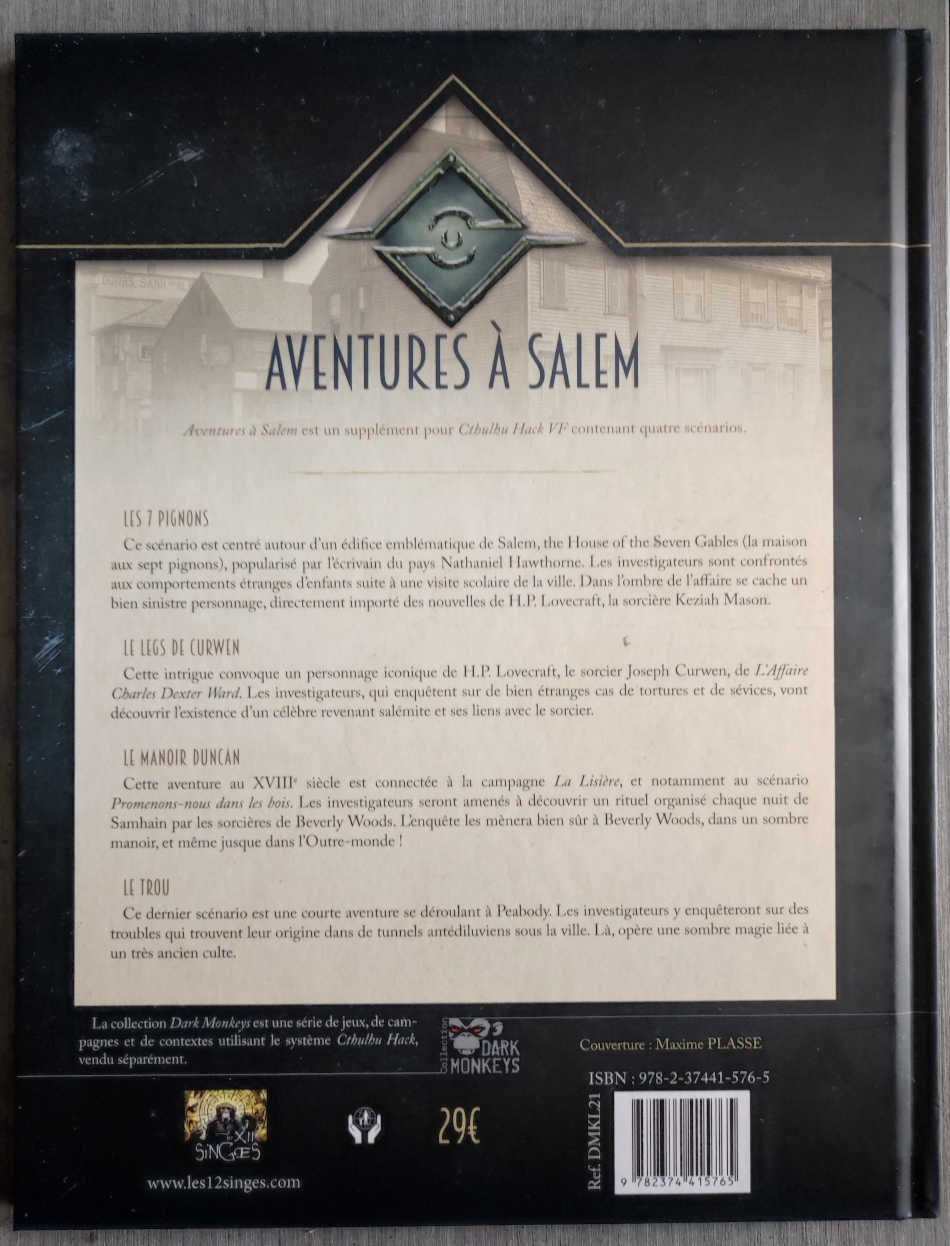 Aventures à Salem est un supplément pour Cthulhu Hack VF contenant quatre scénarios.