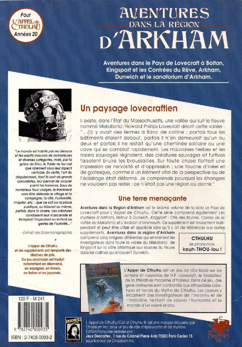 Titre original: Adventures in Arkham Country (Chaosium- 1993)