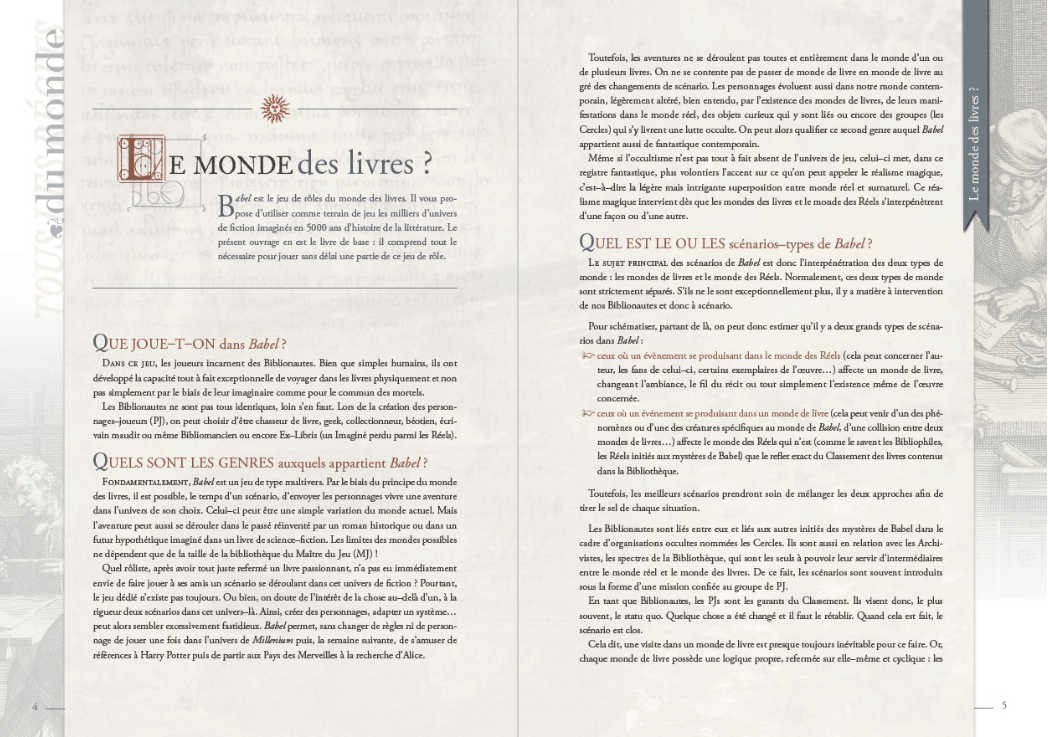 Babel est le jeu de rôle du monde des livres. Il vous propose d’utiliser comme terrain de jeu les milliers d’univers de fiction imaginés en 5000 ans d’histoire de la littérature.
