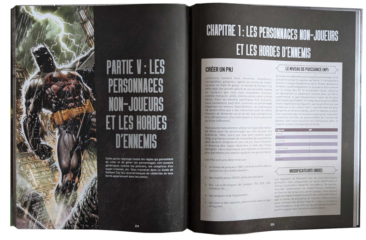 Outre les règles, le livre de base est agrémenté de très nombreux conseils au meneur de jeu (sur la création de scénarios et les façons de mener une partie) et aux joueurs (sur le système pénal de Gotham City et sur la manière d’incarner un officier de police, un justicier masqué ou un criminel).