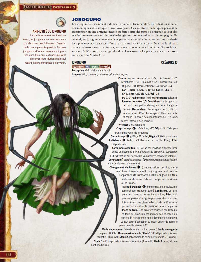 Enfin, l’annexe en fin de livre est composée de sections contenant des informations sur les pouvoirs des monstres fréquemment utilisés, les traits des créatures, les nouveaux rituels, les langues peu courantes, ainsi qu’une liste de créatures triées par type et niveau.