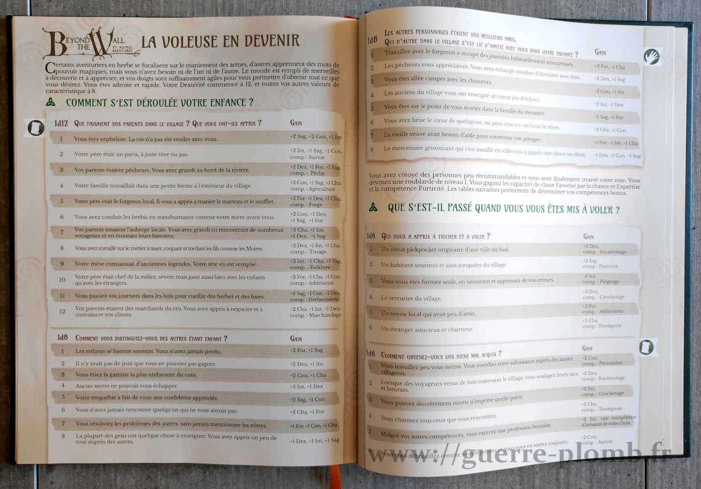 Grâce aux livrets de personnage, les joueurs peuvent, en une heure, voire moins, créer un groupe de héros hauts en couleur appartenant au même village, partageant une histoire commune, et parés pour l’aventure. Ces livrets permettront de définir les valeurs de caractéristique des personnages, leurs compétences, leurs capacités de classe et autres statistiques, y compris leur équipement de départ et quelques pièces supplémentaires à dépenser. Mais ils permettront aussi de créer de manière collaborative les lieux et personnages importants de leur village natal. Les joueurs seront même invités à en tracer la carte.