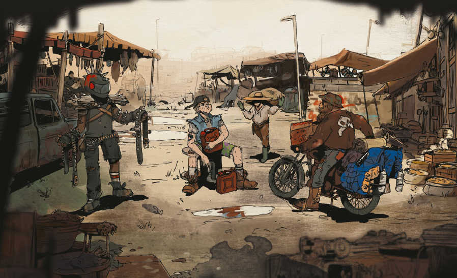 Bitume est un jeu post-apocalyptique, avec une pincée d’humour rock’n’roll et un décalage assumé, sur une terre où la comète de Halley a ravagé toute trace de civilisation. Bon, rassurez-vous l’humanité n’aura pas besoin d’un astre pour arriver à ce résultat.