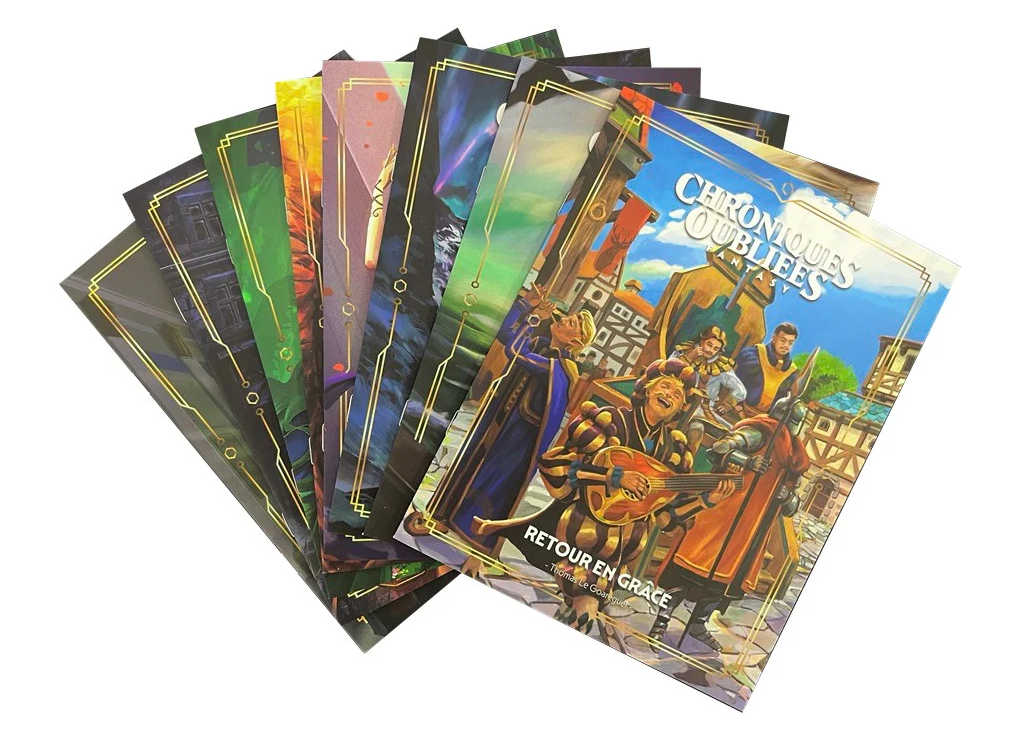 Cette boite comprend les 8 livrets de scénarios débloqués lors du financement participatif de Chroniques Oubliées Fantasy 2e édition :