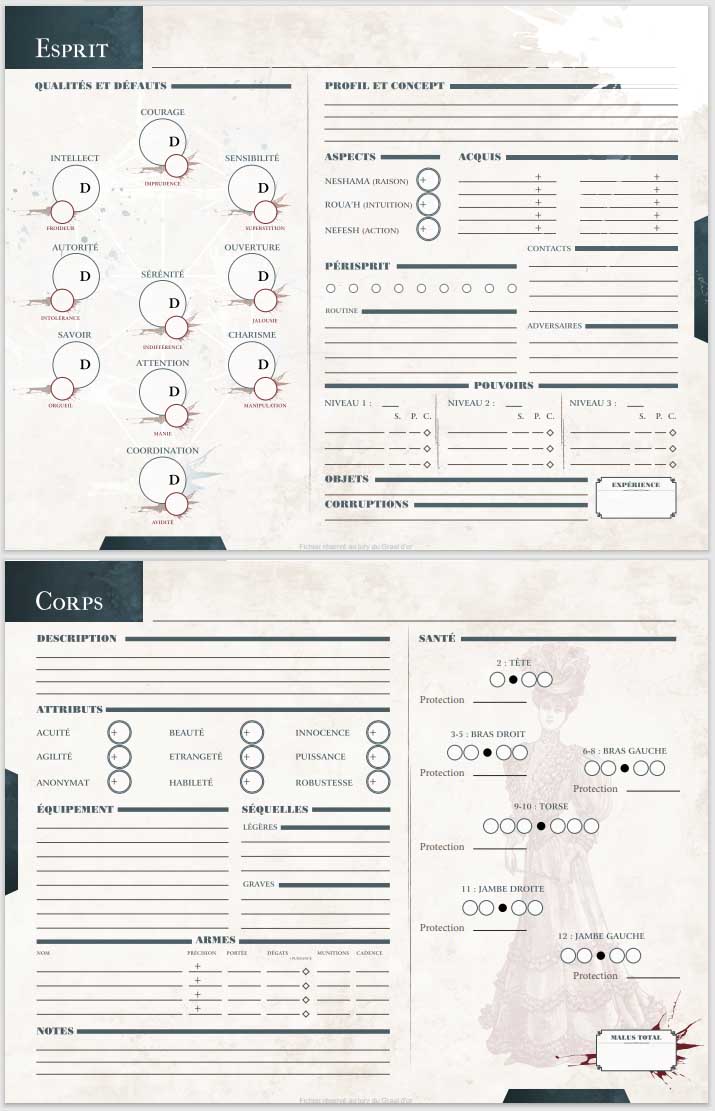Attention Chef d’Œuvre !! il Un jeu de rôle palace 5 étoiles. Tout d’abord le concept : incarner (si j’ose dire) des esprits dans un corps de médium. Si cela n’est pas original… C’est génial, d’autant plus que le système est simple et vraiment pensé pour nous adapter facilement à un environnement ludique si surprenant. Les joueurs, qui jouent ces esprits, chacun avec ses faiblesses et son point fort, vont être contraints de collaborer pour garder leur médium en « bon état de fonctionnement ». Mais tout en ayant la possibilité de prendre le contrôle du corps pour agir sans le plein accord de ses congénères. Des géniales occasions de role play. Enfin, la période, une Belle Époque uchronique si bien adapté aux ambiances ésotériques et où l’avenir est incertain. J’adore !