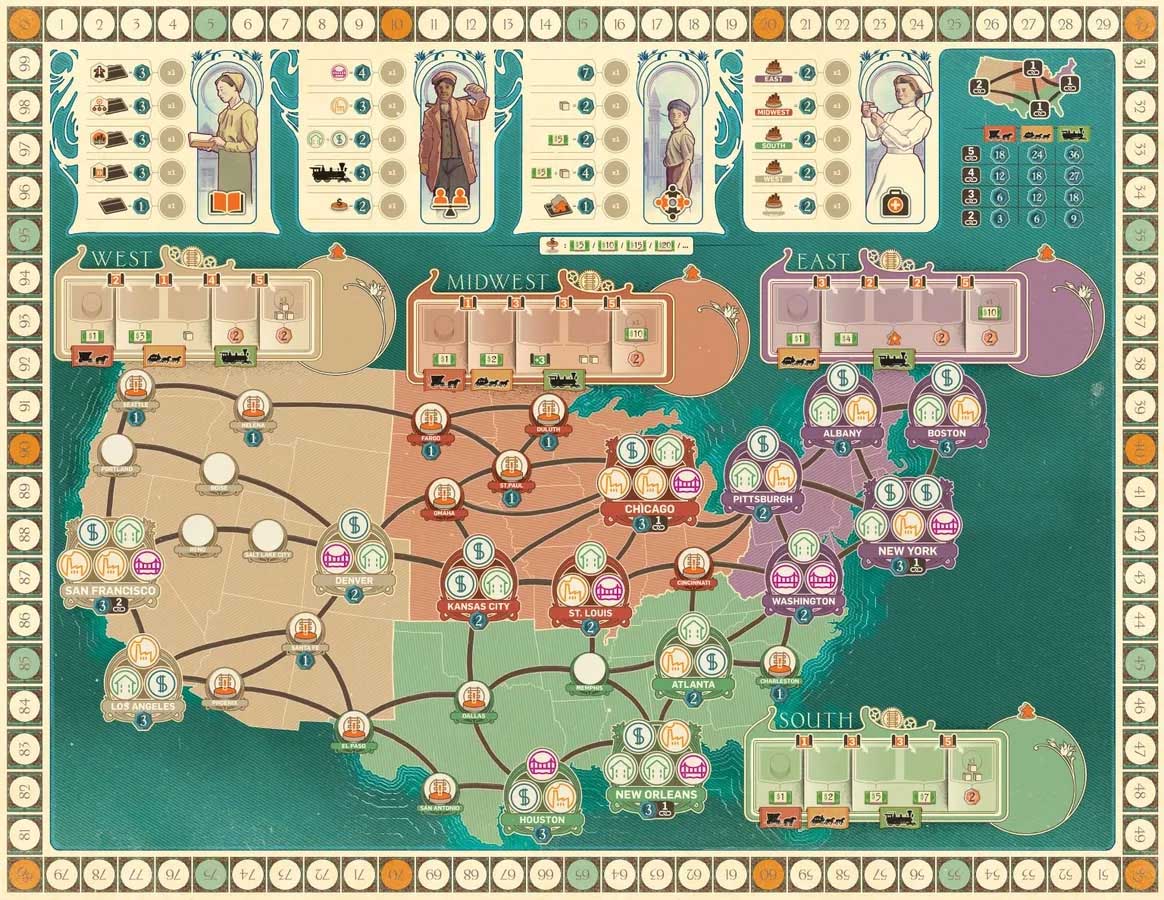 Pendant une partie, vous allez recruter et gérer des employés, développer votre entreprise, investir dans l’immobilier, produire et vendre des biens et créer des chaînes de transport à travers les États-Unis; vous pouvez même travailler avec des personnalités importantes de l’époque. Peut-être même deviendrez-vous un illustre bienfaiteur qui contribue à la grandeur de son pays par ses actes et sa générosité!
