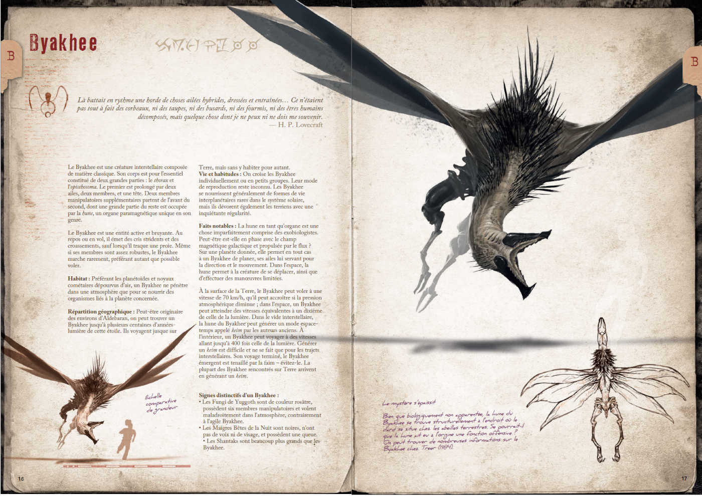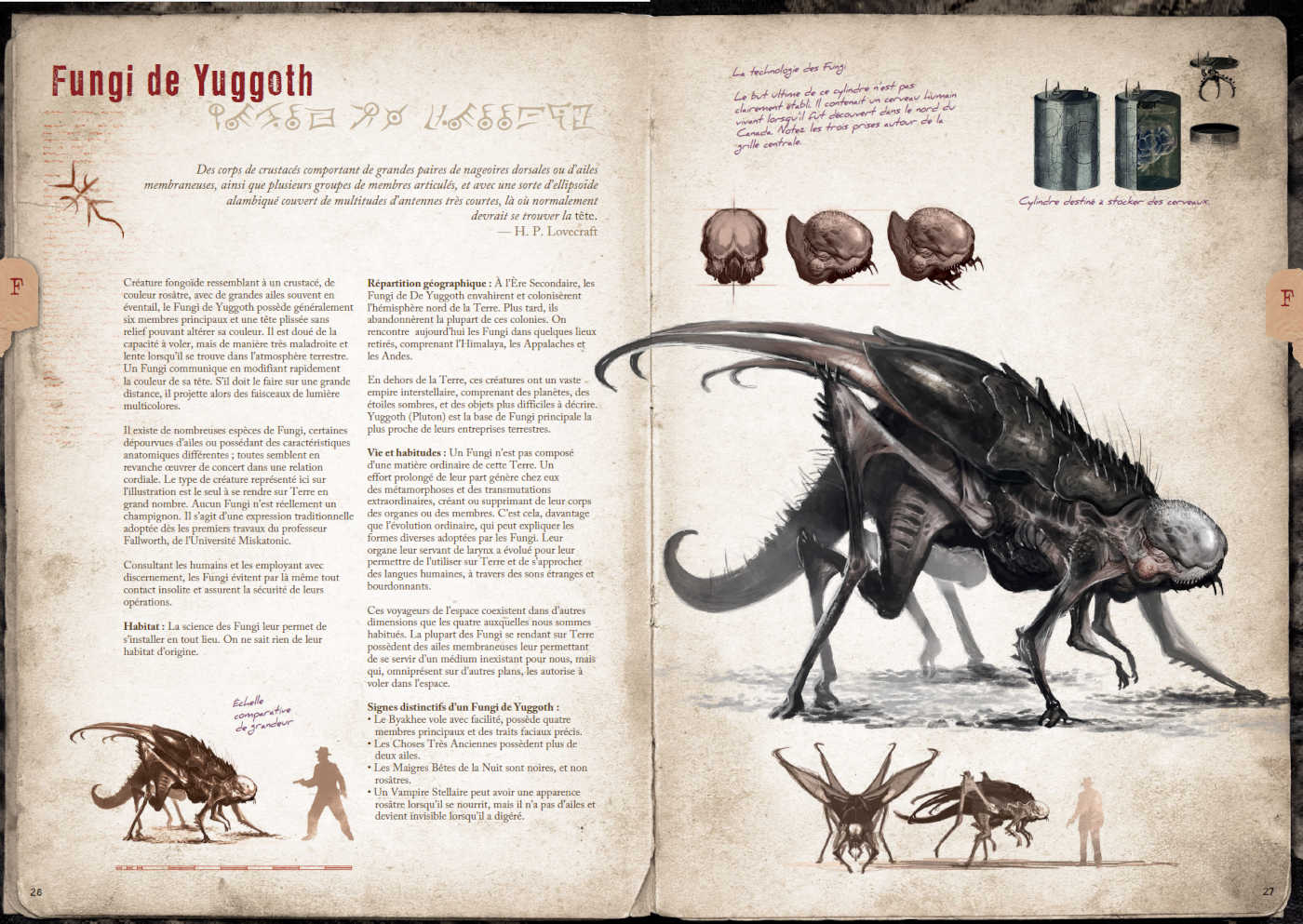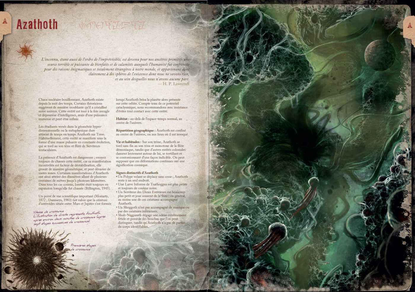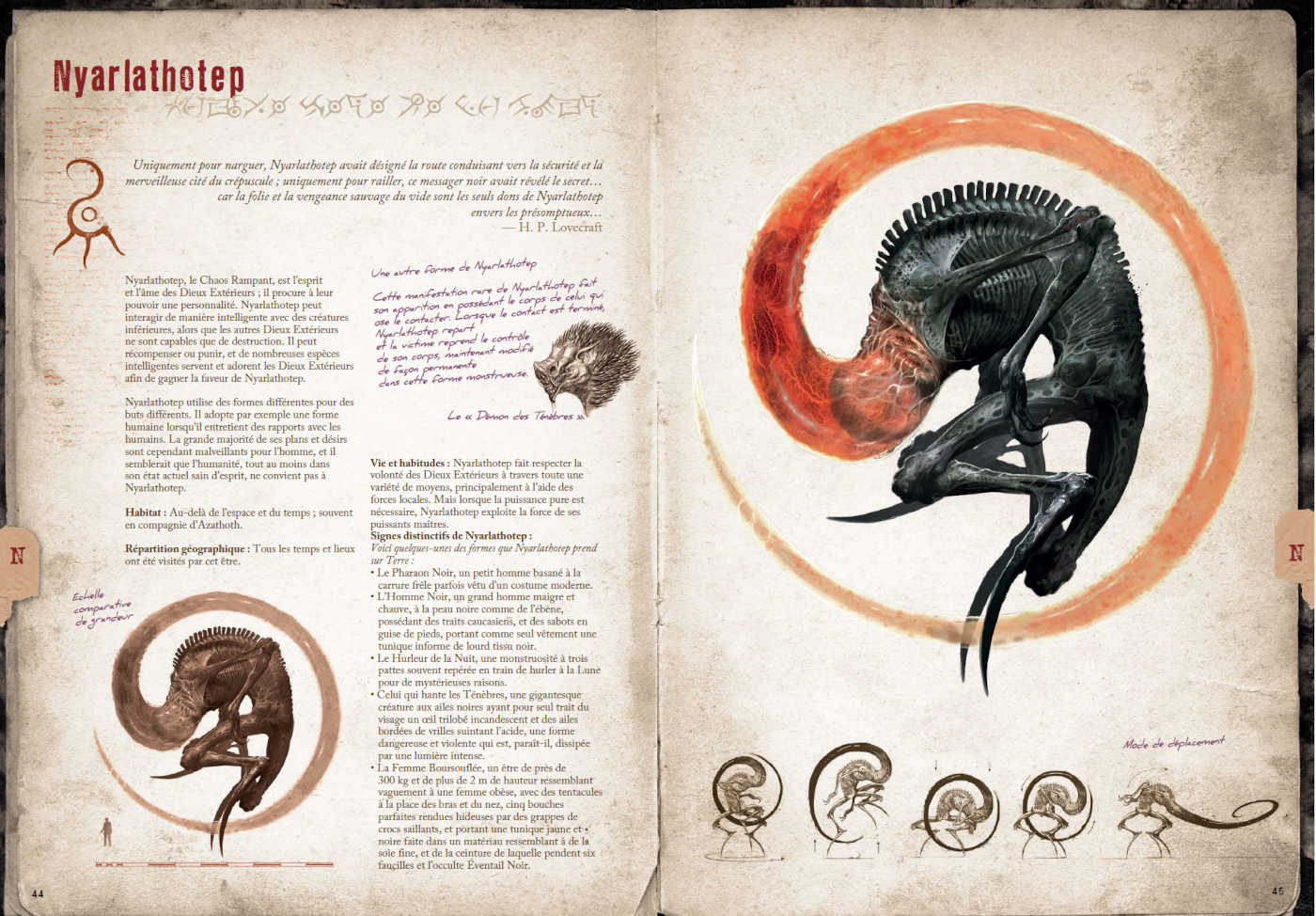 Pour chaque créature ou entité, l’ouvrage présente :