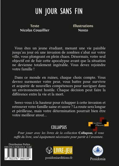 Collapsus est un livre horrifique qui se joue à l’aide d’un dé à six faces, d’un crayon, d’une gomme et au sein duquel vous serez confrontés aux changements moraux et comportementaux qui peuvent affecter un individu, dans un monde où la survie est devenue la seule et unique règle.