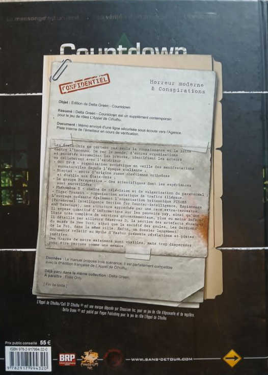 Résumé: Delta Green – Countdown est un supplément contemporain pour le jeu de rôles L’Appel de Cthulhu.