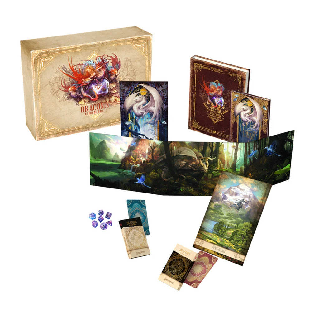 Ce superbe coffret collector, rigide et magnifiquement décoré, inclut la campagne L’Appel de l’aventure, ainsi que l’ensemble des accessoires et aides de jeu pour jouer en tout confort :