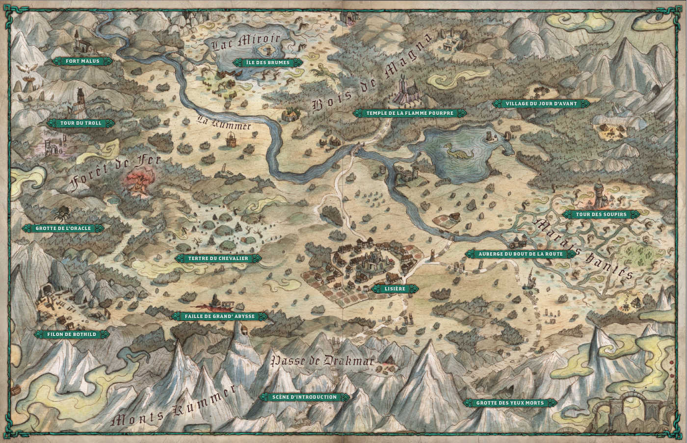 - une grande carte en couleur de la région de Valbrume, réalisée par la talentueuse Francesca Baerald;