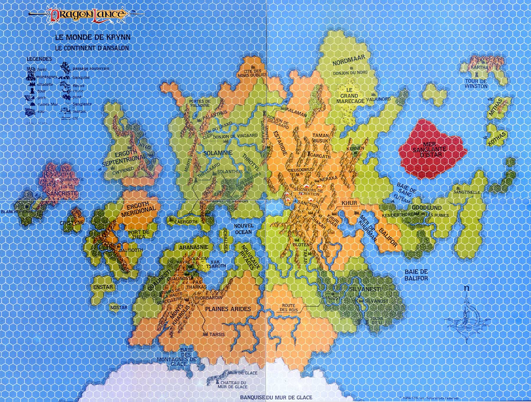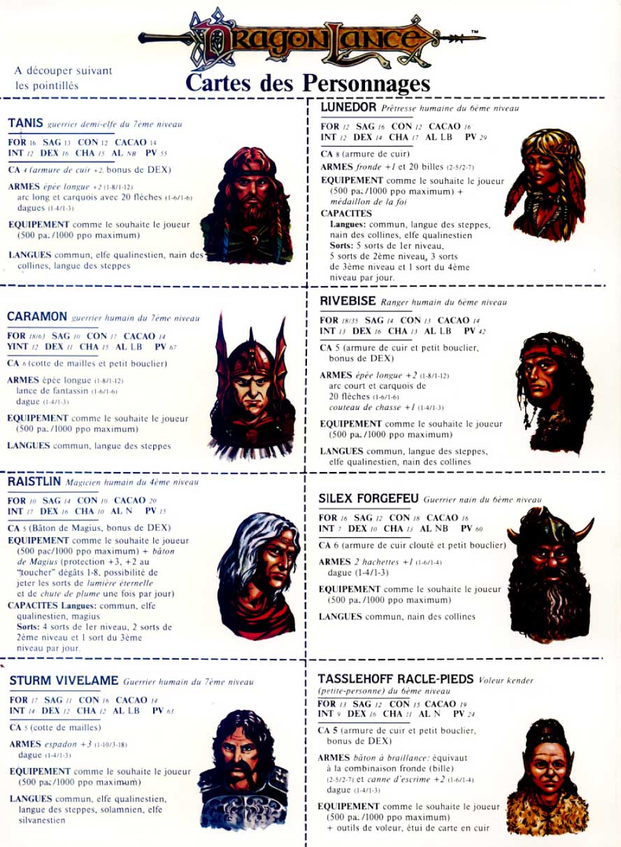 – un feuillet cartonné A3 contenant les plans des donjons, – une représentation du ciel de Krynn et de ses constellations.