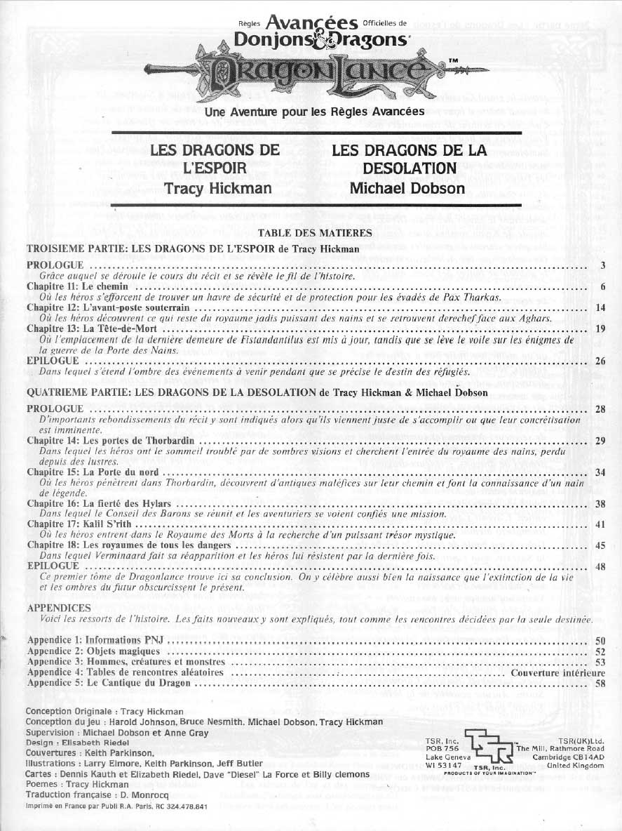 Version originale: Dragons of the Hope (DL3) / Dragons of Desolation (DL4) / Dragons of Mysstery (DL5) – (T.S.R. – 1984)