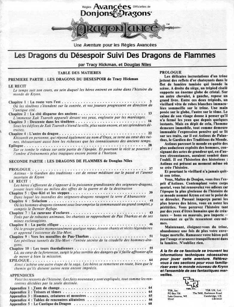 Version originale: Dragons of Despair / Dragons of Flamme – (T.S.R. – 1984)