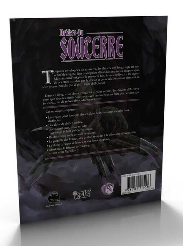 Dans ce livre, vous découvrirez les atroces secrets des driders d’Aventyr, ainsi que tous les outils dont vous avez besoin pour en faire des personnages joueurs… ou de redoutables adversaires.