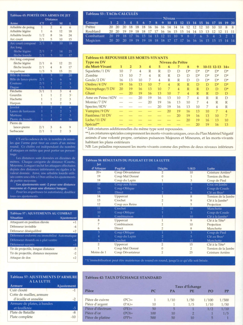 Cet accessoire indispensable au Maître du Donjon met à sa disposition immédiate les tableaux les plus importants pour les situations de rencontres et de combat !