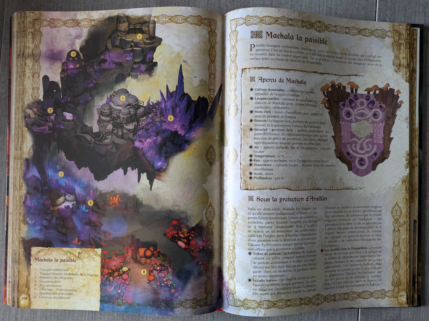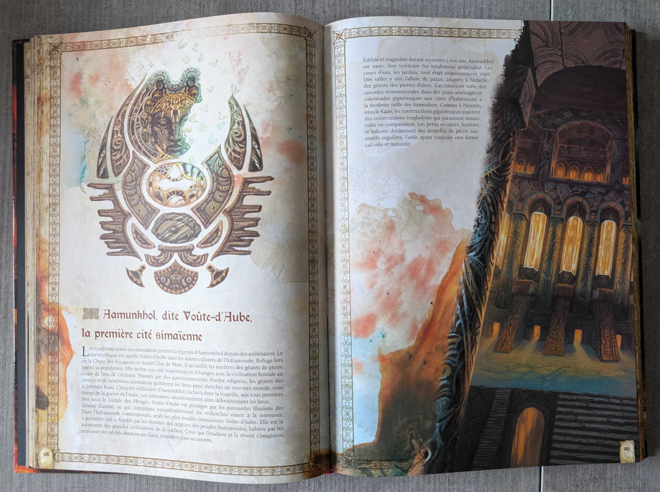 Ambiances. Selon les contrées, les aventures sont teintées de merveilleux crépusculaire, de dark fantasy, de jeux de trônes ou de science fantasy, choisissez quel sera votre Inframonde!