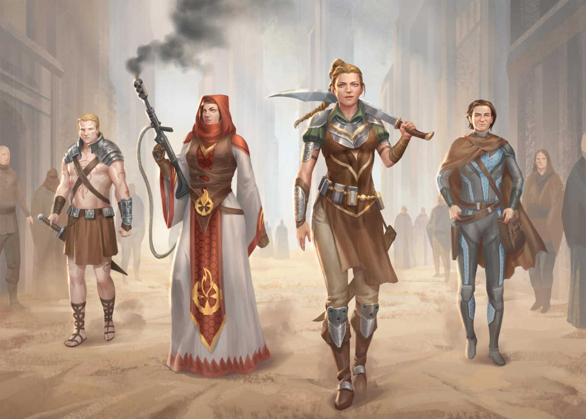 Mêlant habilement les thématiques de la SF avec une esthétique baroque et gothique inspirée du médiéval fantastique, le jeu de rôle Fading Suns offre un univers de space fantasy original, tirant ses inspirations de piliers de la science-fiction (entre autre DUNE de Frank Herbert, la saga Star Wars et le cycle Fondation d’Isaac Asimov).