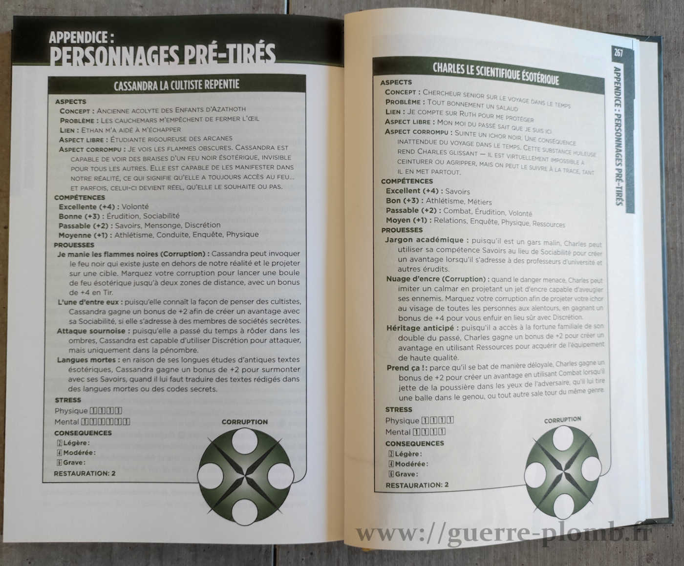 - Des modifications des règles de stress et de concession, comprenant des conseils pour la gestion des derniers combats héroïques qui sacrifient un personnage mais qui aident à faire évoluer la ligne du temps vers un meilleur résultat.