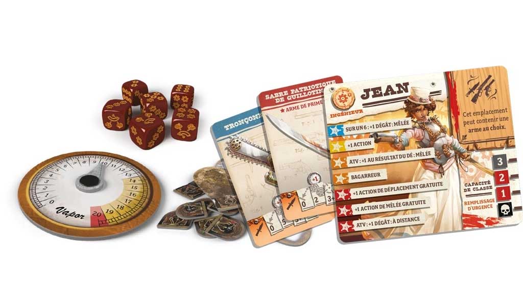 Gears & Guns présente un univers alternatif pour Zombicide: Undead or Alive: un monde alimenté par la vapeur ! Les nouveaux survivants peuvent désormais aller à Toute Vapeur, en puisant dans leur équipement une puissance phénoménale au risque de les dévaporiser ». Découvrez la nouvelle classe d’Ingénieur, et mettez la main sur des inventions de pointe qui donneront à vos survivants l’avantage sur les morts-vivants!