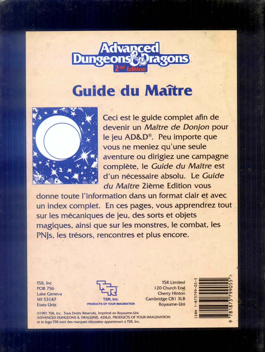 Ceci est le guide complet afin de devenir un Maître de Donjon pour le jeu AD&D. Peu importe que vous ne meniez qu’une seule aventure ou dirigiez une campagne complète, le Guide du Maître est d’un nécessaire absolu.
