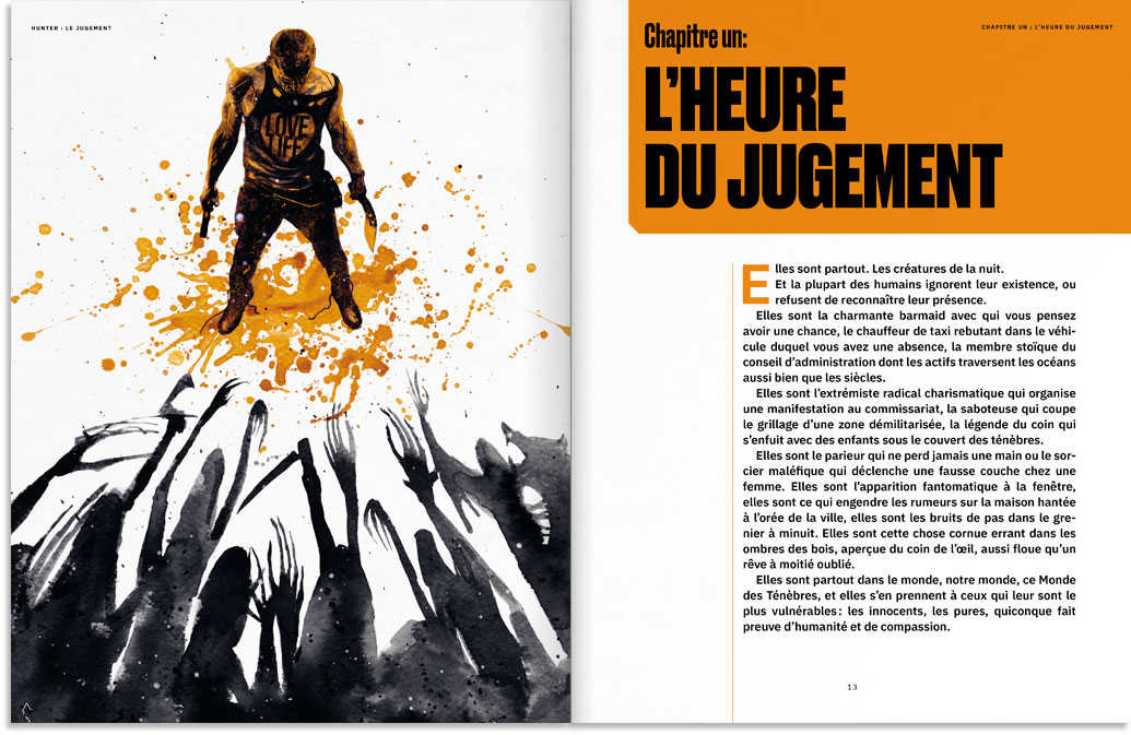 Toujours considérée comme « nouvelle », la cinquième édition de Vampire : la Mascarade (V5) est sortie il y a déjà quatre ans. Aujourd’hui, avec la nouvelle édition de Hunter : le Jugement (H5), le Monde des Ténèbres s’étend au-delà de la gamme phare de Vampire. Dans Hunter, les personnages-joueurs sont une petite cellule d’humains normaux qui ont appris l’existence du surnaturel et qui sont déterminés à le détruire ou à s’en occuper d’une manière ou d’une autre. Hunter présente une approche différente du Monde des Ténèbres, non seulement parce que les protagonistes ne sont pas surnaturels, mais aussi parce qu’il est fortement axé sur la mission.