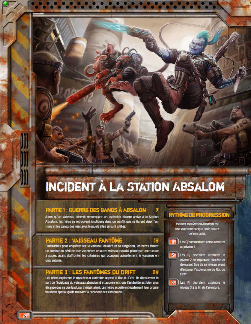 C’est quand une violente guerre des gangs éclate sur un quai d’amarrage de la Station Absalom que les personnages joueurs sont recrutés par la Société des Explorateurs d’étoiles afin d’enquêter sur cette effusion de sang inopinée. En explorant dans les sordides quartiers du Pic de la station, les héros affrontent les gangs et découvrent que les deux ont été payés pour initier le soulèvement et que le véritable conflit se joue entre deux compagnies minières concurrentes qui luttent pour s’emparer d’un engin nouvellement arrivé en orbite autour de la station : un vaisseau mystérieusement déserté et l’étrange astéroïde qu’il a récupéré dans le Drift. Pour éviter d’autres violentes échauffourées, les héros sont chargés d’explorer le vaisseau pour découvrir ce qu’il est advenu de l’équipage et la nature de l’astéroïde qu’il remorque. Mais ce que les joueurs découvriront là-bas provoquera des événements en chaîne susceptibles de menacer l’ensemble des Mondes du Pacte et de changer la galaxie à jamais…