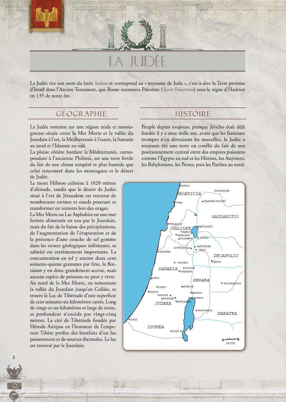 Ce supplément pour le jeu de rôle IMPERATOR comprend cinq longs scénarios inédits à jouer en campagne. Dans ce supplément, nous vous proposons une fois de plus de vivre des aventures dans le sillage d’un homme qui a marqué l’Histoire : un charpentier du nom de Jésus Christ.
