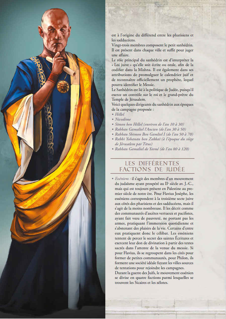 Cependant, du fait de certaines contradictions historiques et de la nécessité d’obtenir une continuité dans la trame d’intrigues, vous découvrirez quelques raccourcis de temporalité pour servir l’aventure des personnages. Cette campagne est relativement ouverte, et c’est aux joueurs de décider de la conduite à tenir pour maintenir l’ordre et la sécurité dans la contrée alors que les faits historiques et bibliques se déroulent sous les yeux de leurs personnages. Ce sera aux joueurs de prendre en main le cours des événements. Bienvenue en Terre promise.