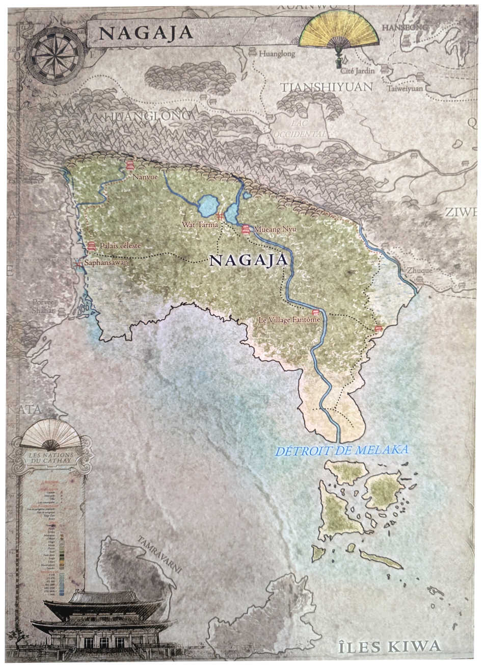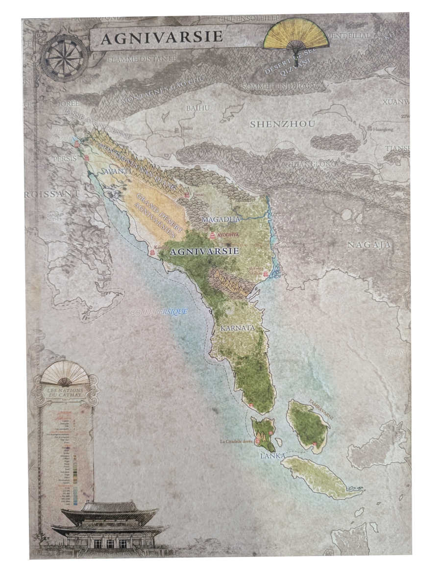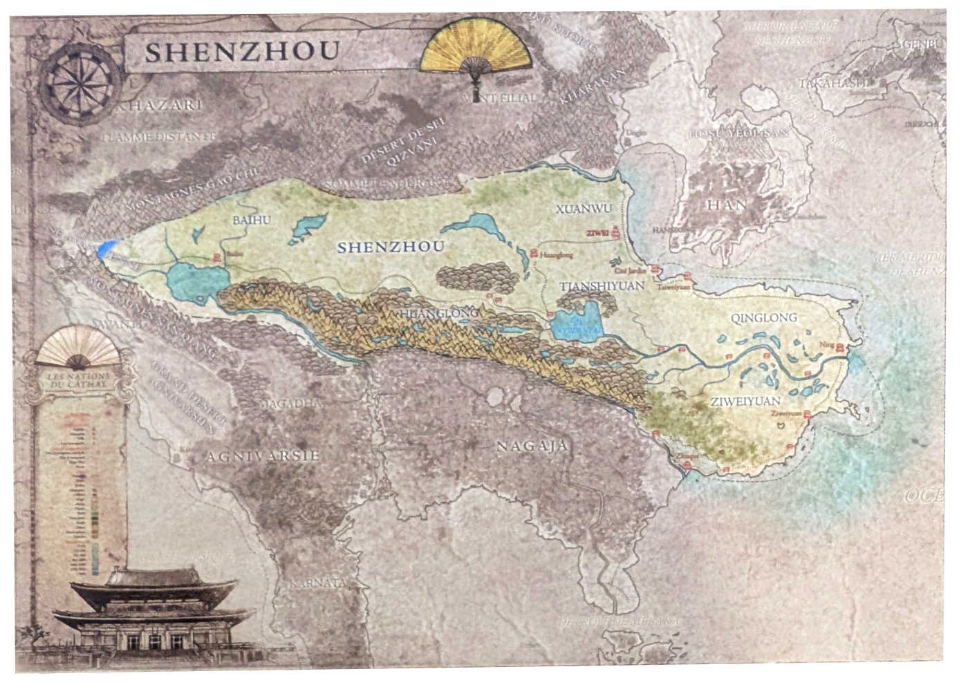 Le set de cartographies au format A4 comporte les cartes des six nations du Cathay, réalisées par Josselin Grange.