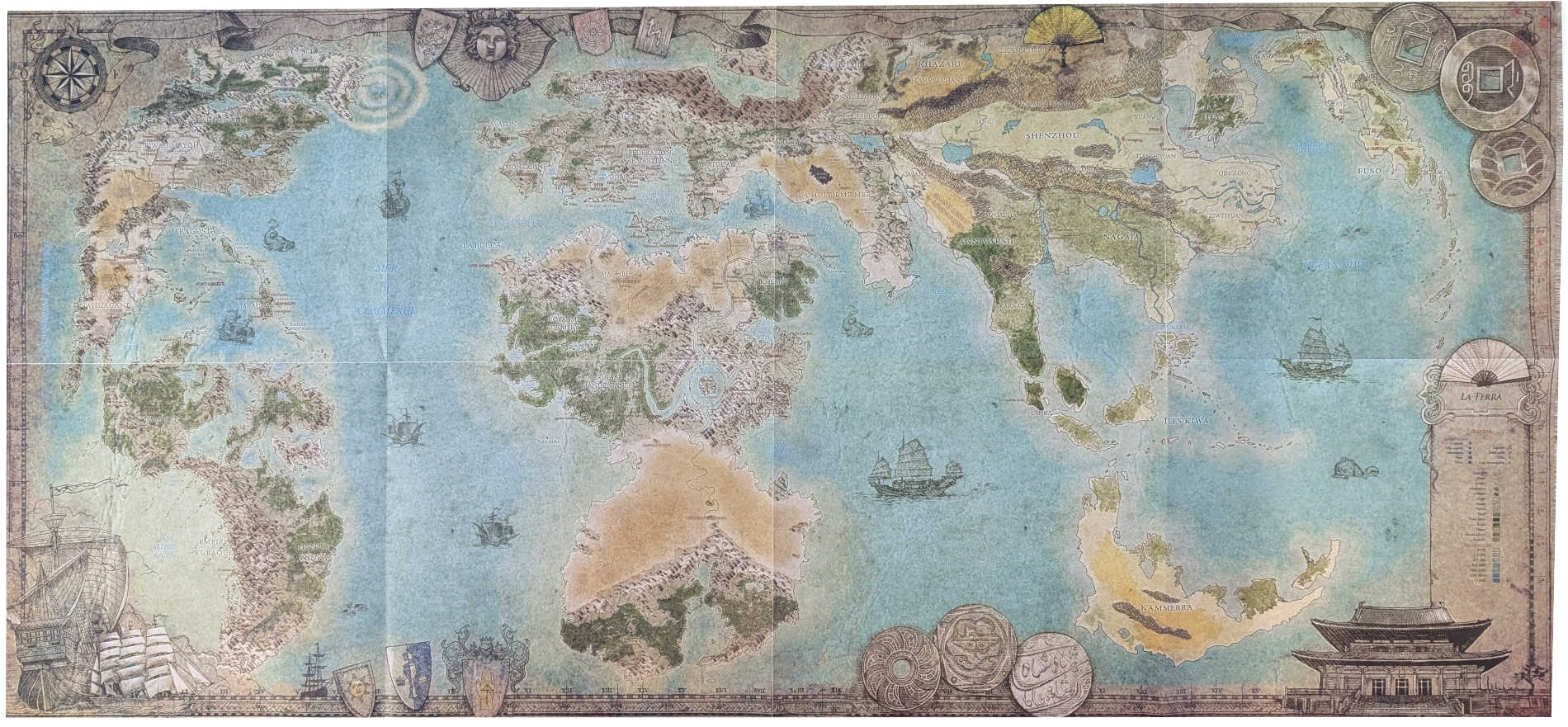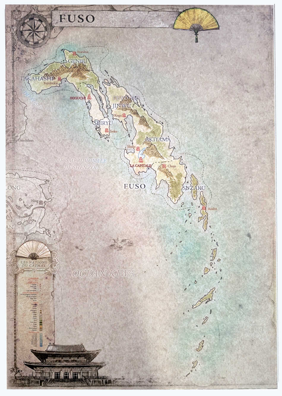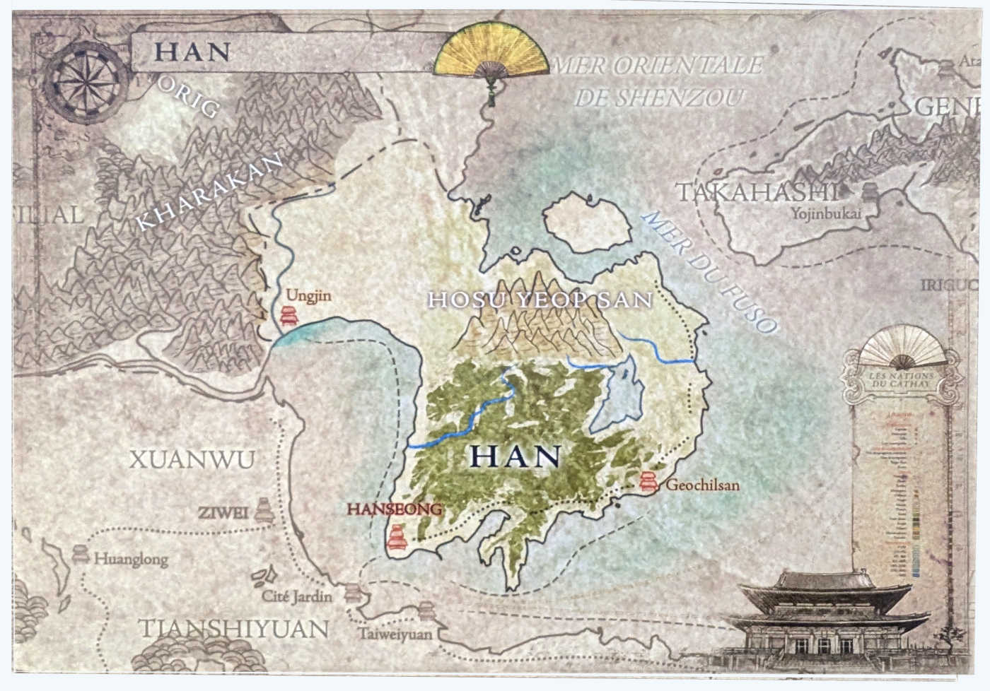Le set de cartographies au format A4 comporte les cartes des six nations du Cathay, réalisées par Josselin Grange.