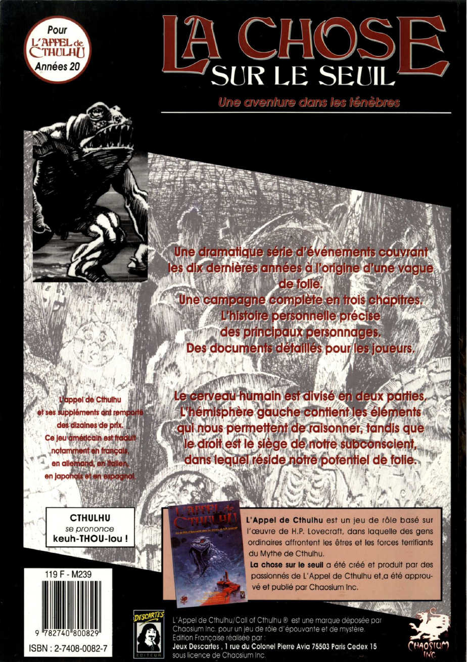 Titre original: The Thing at the Threshold (Chaosium – 1992)