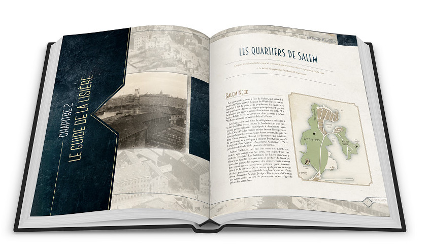 Ce guide ne contient aucun élément de règles, il peut servir également de livre de contexte pour d’autres jeux de rôle occultes se déroulant à Salem. Deux objectifs de ce financement participatif permettent de compléter le guide : l’un ajoute 12 pages de graines de scénarios, des intrigues à développer par le meneur de jeu, et l’autre ajoute des personnages typiques par quartier, pour égayer la ville et ses environs.