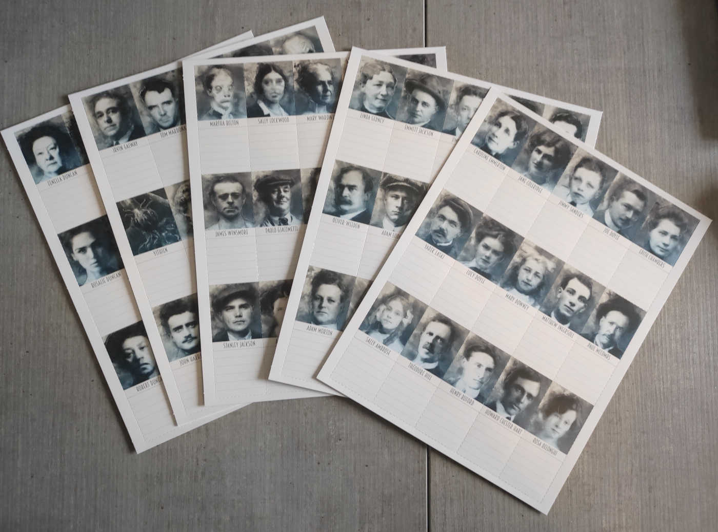 – Un trombinoscope de 11 pages de PNJ, pré-découpé, que le MJ peut donner aux joueurs afin qu’ils annotent durant l’enquête.