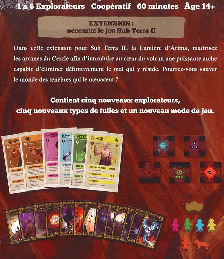 La lumière d’Arima apporte un nouveau groupe de personnages au jeu Sub Terra II. Tous ces personnages sont dotés de capacités fantastiques (coordination, attaque et anticipation) qui vous aideront à relever les nouveaux défis amenés par cette extension (de nouveaux pièges, etc.).