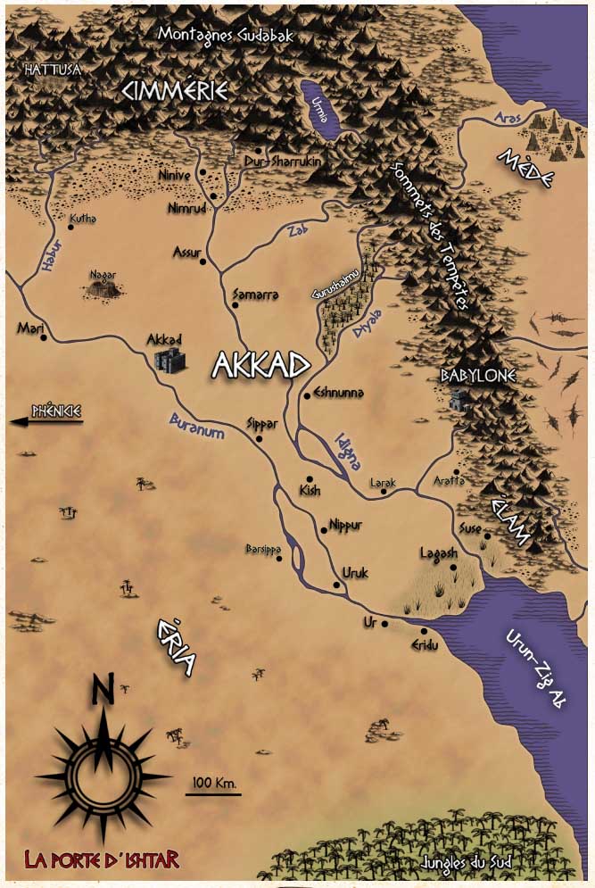 Pour ce qui est de l’univers : j’adore ! Un setting complet et immersif mixant les éléments historiques de la civilisation akkadienne et les éléments pulps des œuvres d’Howard et de type Sword & Sorcery pour la création d’un environnement empli de sorcellerie, de mythologie et d’action. Franchement, c’est le top !