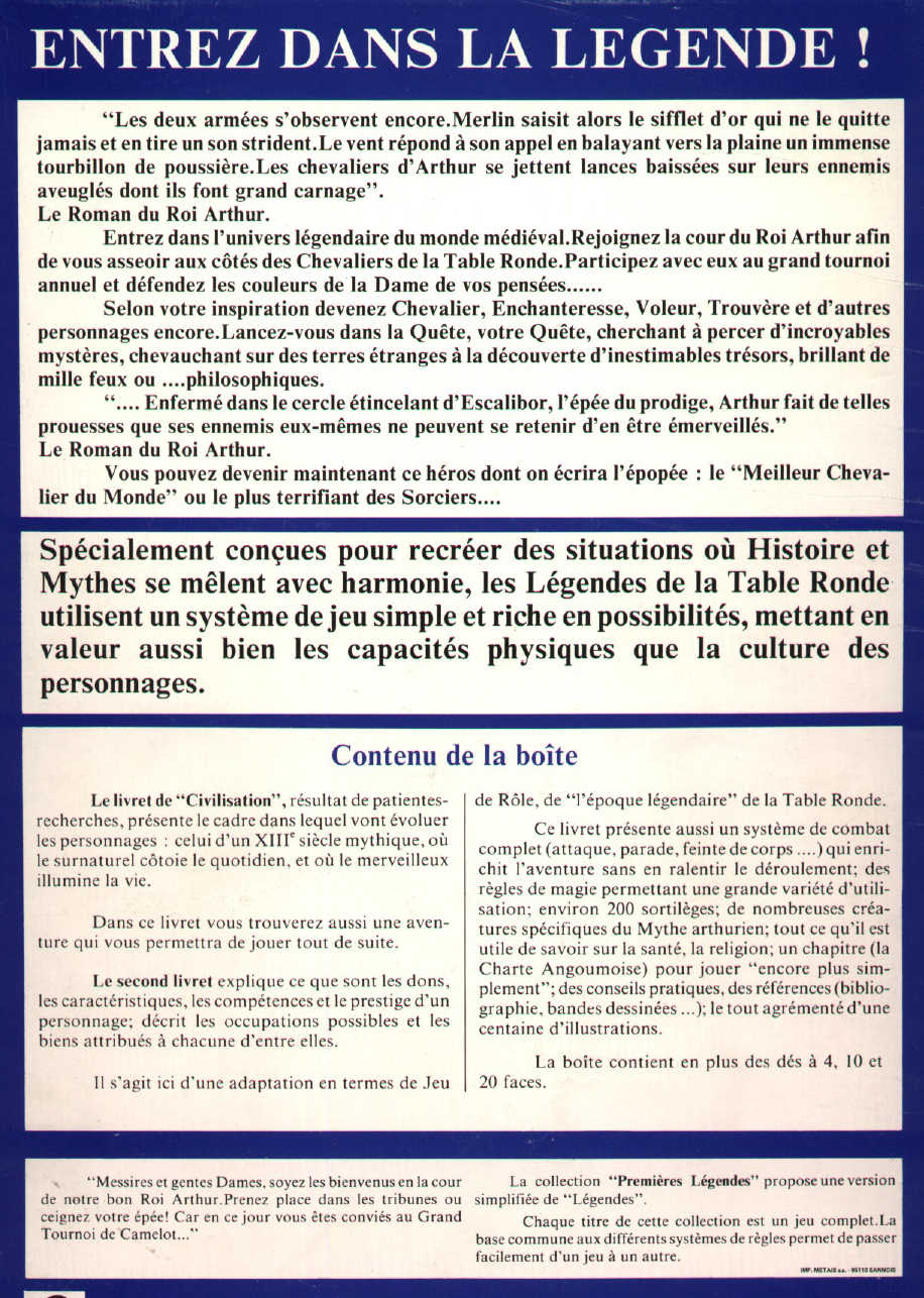 Spécialement conçues pour créer des situations où Histoire et Mythe se mêlent avec harmonie, Les Légendes de la Table Ronde utilisent un système de jeu simple et riche en possibilités, mettant en valeur aussi bien les capacités physiques que la culture des personnages.
