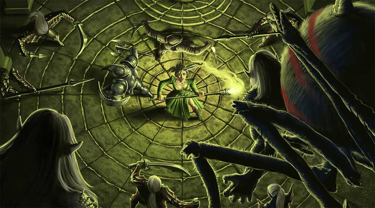 Cette nuit, alors qu’une cérémonie dédiée à la lumière se déroule à la surface du monde, dans la cité souterraine des araignées une matrone drow consolide un pacte avec des entités dévoreuses d’âmes : elle fera d’immenses sacrififices en échange de pouvoirs inimaginables.
