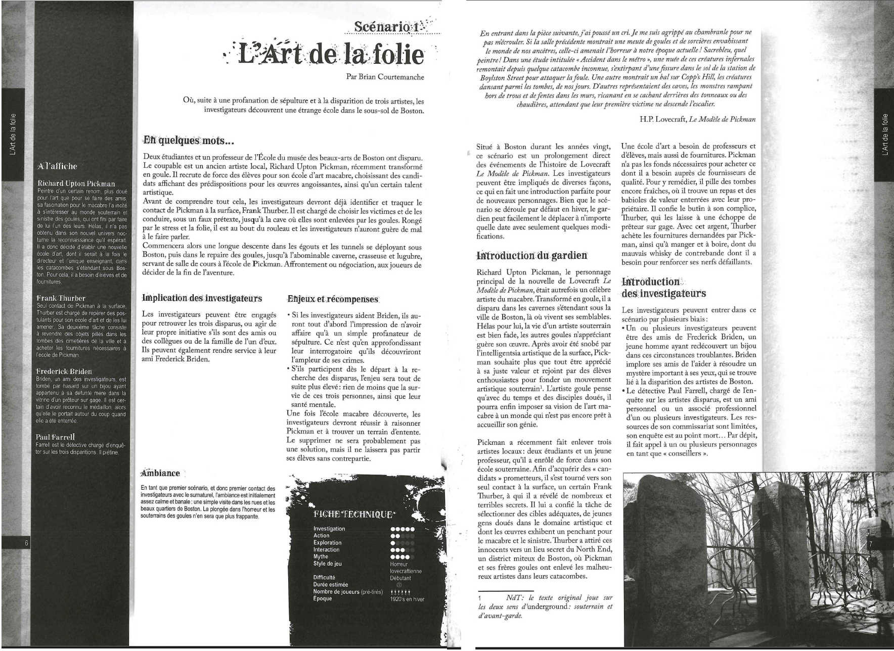 - L’Art de la Folie. Le Modèle de Pickman dirige maintenant une école d’art établie sous la ville de Boston. Il recherche à la surface des élèves ayant des prédispositions à son œuvre macabre.