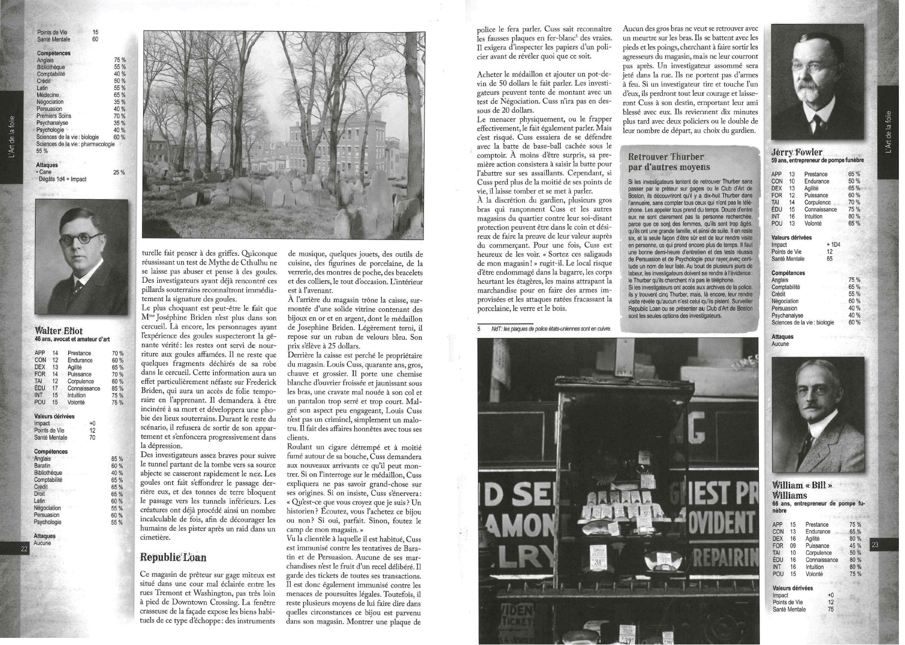 Les cinq scénarios peuvent être joués indépendamment ou former une campagne s’ils sont joués dans l’ordre, grâce aux propositions d’enchainements optionnels. Illustrées de photos d’époques, ces aventures rendent hommage au terrifiant imaginaire Lovecraftien.