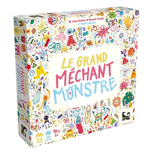 Dans Le Grand Méchant Monstre, il faut choisir ses dés pour dessiner son monstre petit bout par petit bout, mais également savoir quand s’arrêter pour prendre un jeton Peur et le placer dans le Trouillomètre. Le premier à dépasser la jauge gagne la partie et devient le Grand méchant monstre !