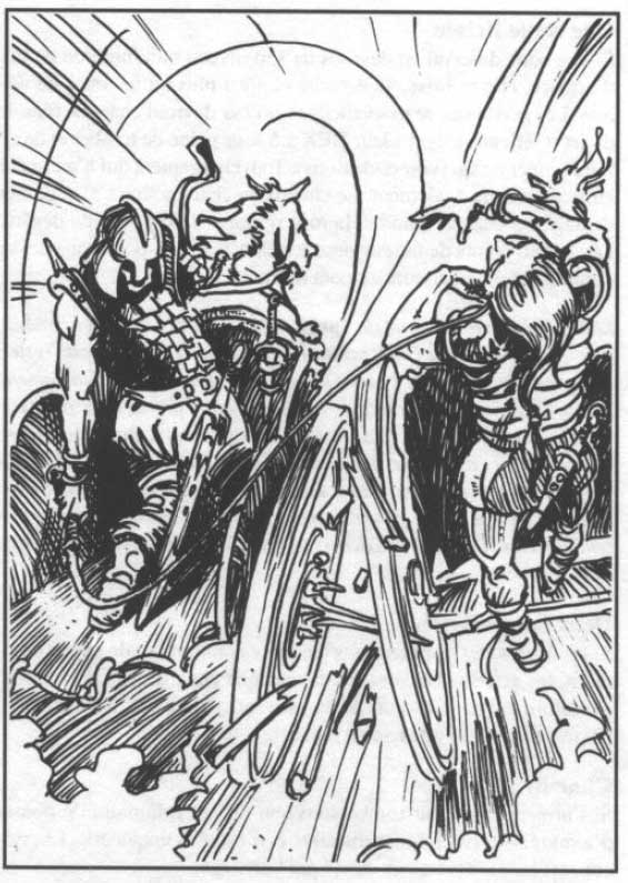 – De nouvelles règles sur les combats d’arènes et les courses de chars. Une fois lues, vous saurez comment détruire toutes les roues de vos adversaires, provoquer la fuite de leurs chevaux, les faire tomber de leur véhicule et mille autres facéties qui feront la joie de vos parties. Après ces magnifiques exploits, vous parviendrez peut-être à griller Ben-Hur sur le poteau et l’emporter. Le plan d’un amphithéâtre et une piste de course complètent cette section pleine de bruit et de fureur.