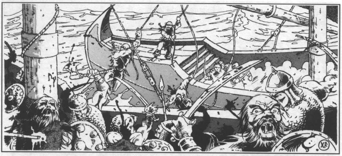 Vous êtes lassé de la poussière des grands chemins, qu’à cela ne tienne! Embarquez-vous et affrontez l’immensité des oécans. il vous faudra compter avec les pirates, les tempêtes et les monstres des abysses. Autant d’obstacle à surmonter si vous voulez parcourir le monde. Cette partie consacrée à la navigation décrit tout ce qui vous sera nécessaire pour construire un navire, le gouverner et le mener au combat.