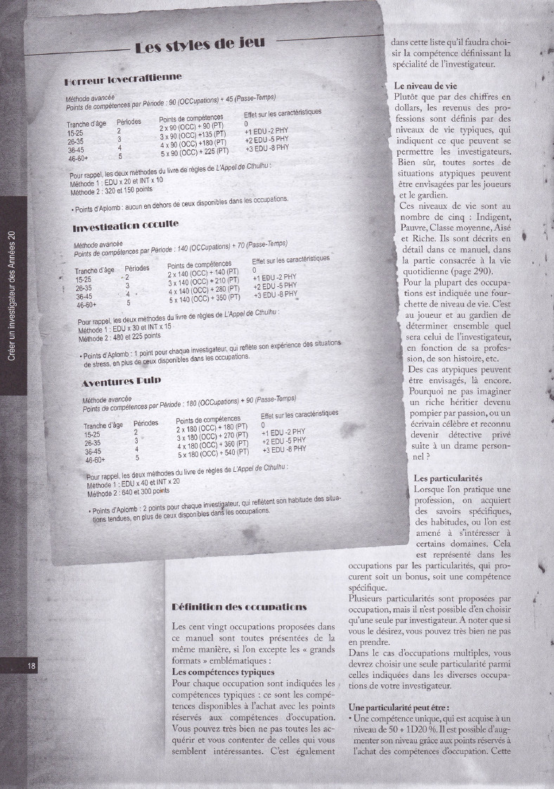 Dans la première partie, le joueur qui souhaite Créer un investigateur des Années 20 trouvera un processus de création enrichi incluant des éléments de psychologie, de motivation, ainsi que de nouvelles possibilités pour bâtir un véritable passé de son personnage.